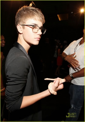 O nosso Justin levou uma cobra de verdade pro VMA, é pequena mas eu tenho medo rsrsrs ...